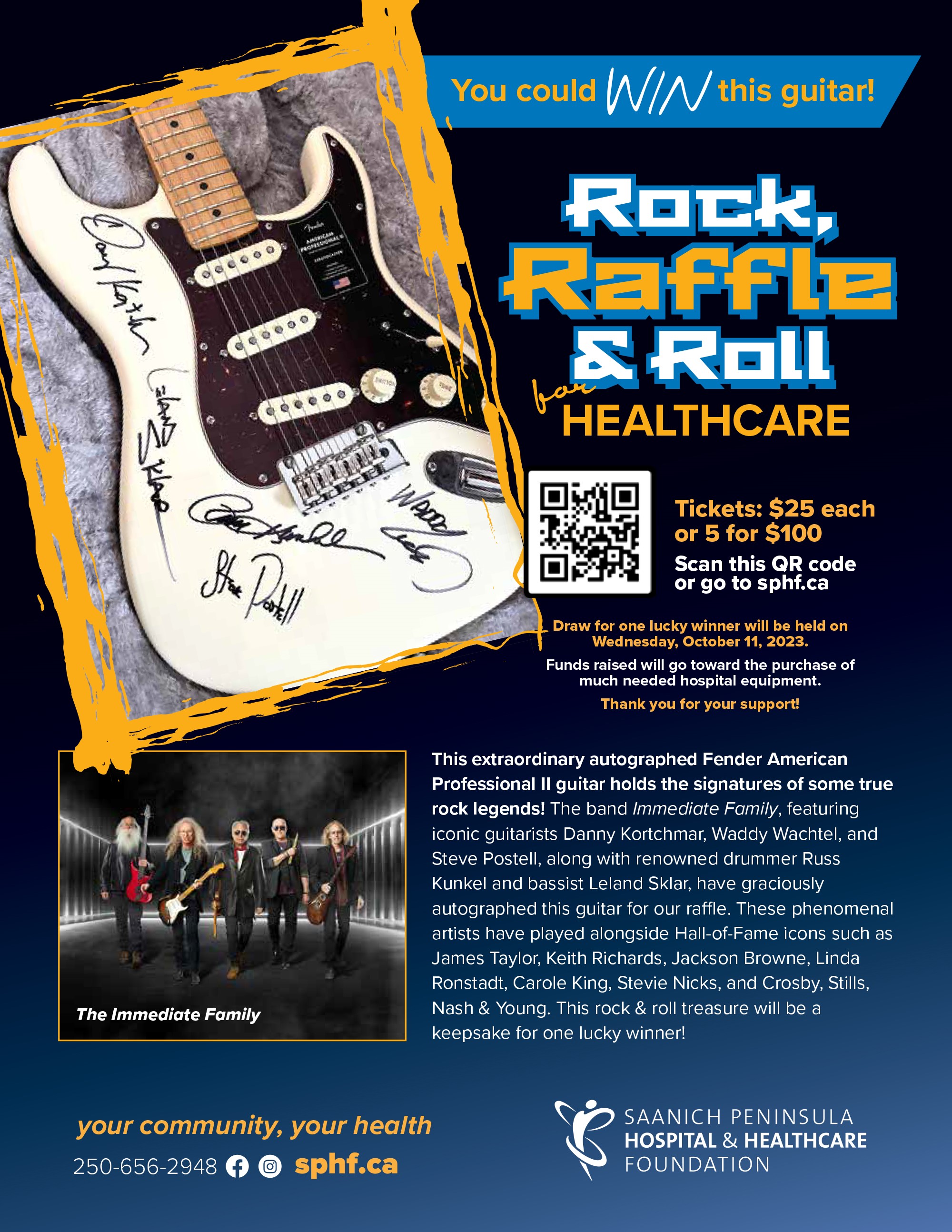 https://sphf.ca/ 9710 Third Street, SidneyRock, Raffle & Roll for Healthcare! You can win this autographed Fender American Professional II Stratocaster guitar! Big names from the Los Angeles music industry lend their names to help […]